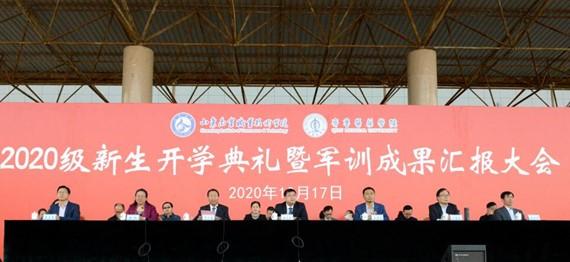 10月17日下午,山东商院、齐鲁医药学院商学院2020级新生开学典礼暨军训成果汇报大会在校本部体育场举行。学校领导班子,行政部室、二级院部负责人出席,副院长徐红主持,各学院学生教育管理工作人员、2020级全体新生参加。