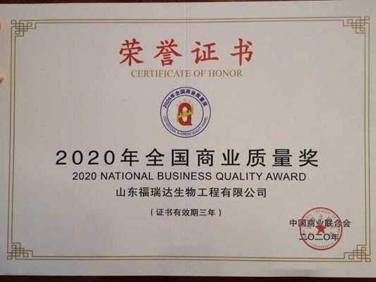 11月1日,中国商业联合大会在北京隆重举行。根据《全国商业质量奖评审管理办法》(试行)有关规定,经企业自愿申报、各地商业主管部门和行业协会推荐,全国商业质量奖评审办公室初步形式审查,并依据国家标准《卓越绩效评价准则》(GB/Z19580—2012)和《卓越绩效评价准则实施指南》(GB/Z19579—2012)技术文件,组织专家评审及获奖名单公示,决定授予山东福瑞达生物工程有限公司(以下简称“福瑞达美业”)等126家单位“2020年全国商业质量奖”。