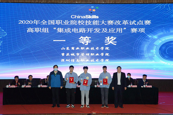 11月28日至30日,2020年全国职业院校技能大赛改革试点赛“集成电路开发及应用”赛项(高职组)比赛在山东商院举办,来自全国28个职业院校的84名选手参加了本次比赛。经过两天的角逐,山东商院、重庆城市管理职业学院、深圳信息职业技术学院获得一等奖。