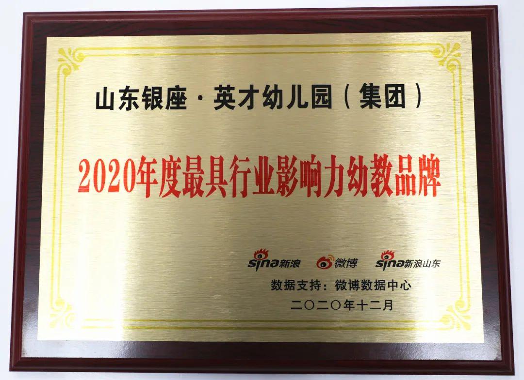 近日,2020年度山东教育盛典荣耀榜单发布,银座幼教获“2020年度最具行业影响力幼教品牌”。