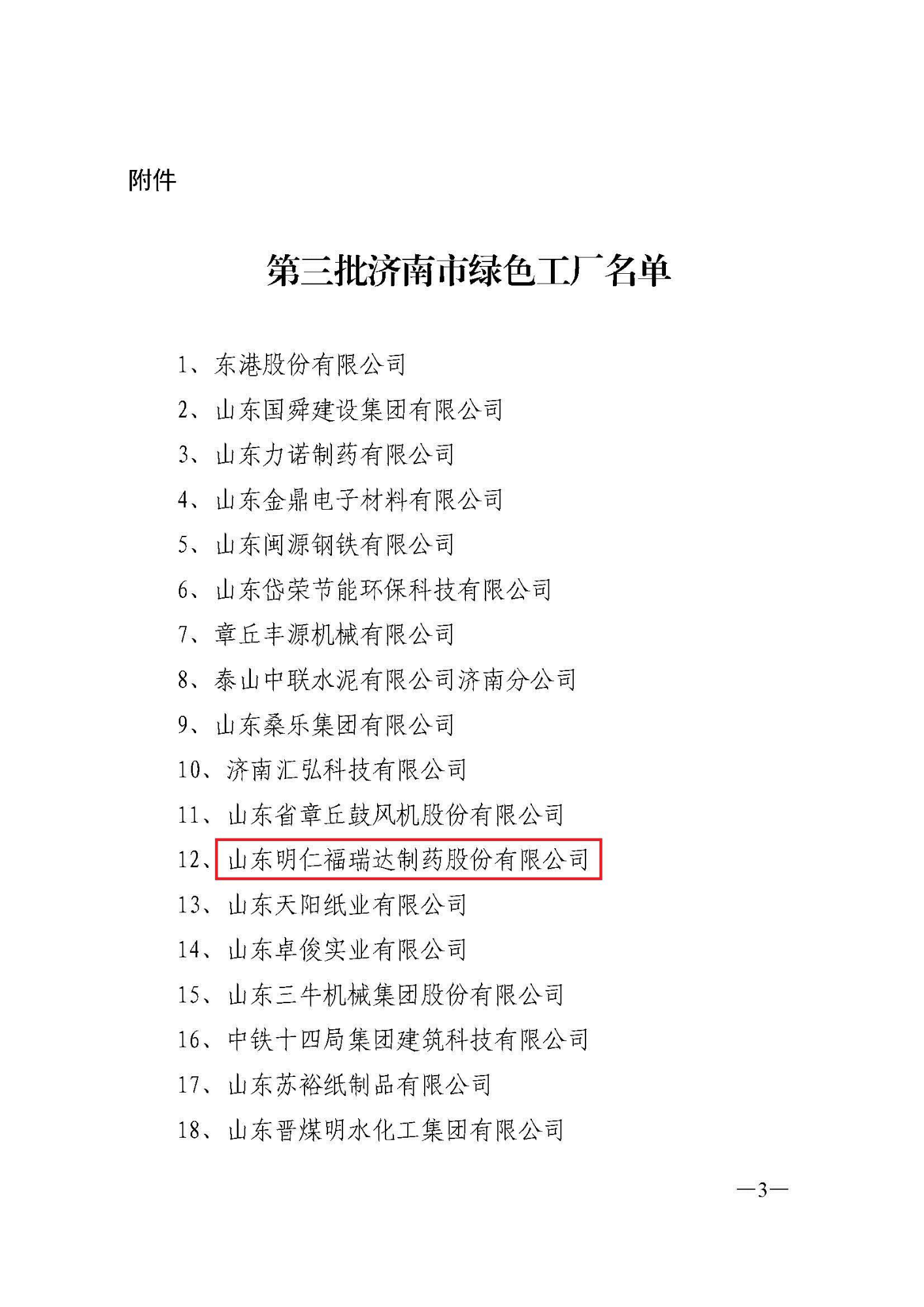1月18日,明仁福瑞达荣登济南市工信局公布的第三批济南市绿色工厂名单。