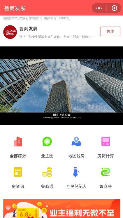 近日,鲁商发展线上购房系统“鲁商云房”和“鲁商云享家”微信小程序正式上线,用户只需通过搜索微信小程序就可以实现线上看房、选房和购房。
