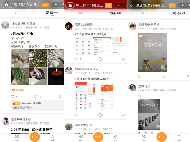 学院引导全体学生参与两项活动,掀起一股“强国热”和“劳动潮”,鼓励学生随时随地都是课堂,时时处处都有施展舞台。超过3600人次的学生参与到“学习强国”学习挑战中,每日主动学习并上报分数截图进行PK;超过4000人次的学生参与到劳动教育中,每日展示自己居家清扫卫生、做饭、洗碗等画面,帮助父母做一些力所能及的事,在劳动中感悟父母养育之恩。
