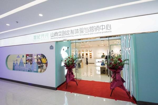 世纪开元·山商文创定制体验与营销中心,位于学校现代服务业公共技能实训基地4楼,是工商管理学院与世纪开元联合打造的产教融合校园文创新零售项目,学校世纪开元现代学徒制班学生通过课程实训、课下创业等形式全程参与到店铺日常运营、客户接待、销售管理以及定制化产品研发、设计、推广等工作中。