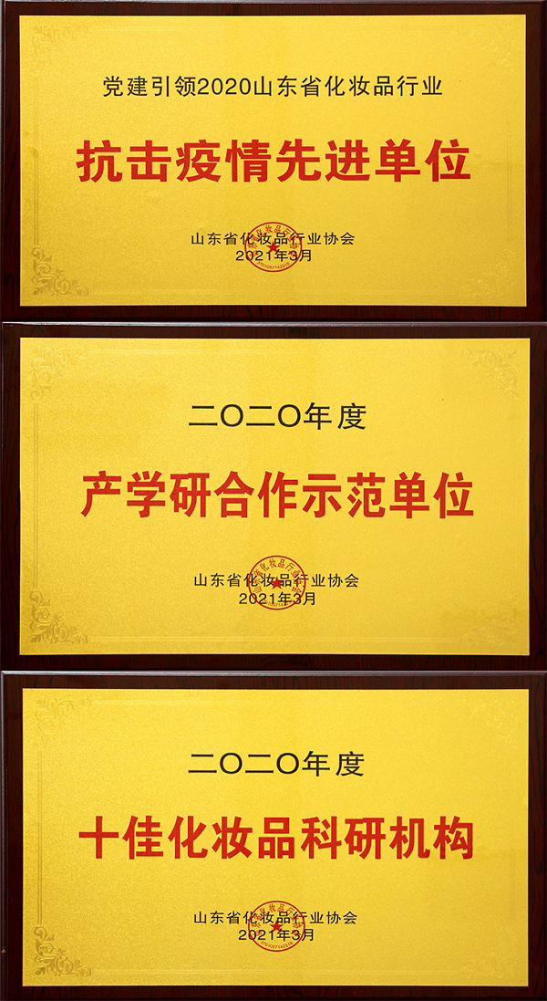 3月29日,山东省化妆品协会二届二次会员代表大会暨2020年度表彰大会在济南顺利举行。会议对获奖单位和获奖人员进行了表彰,在全省1250家会员单位中,省药科院荣获了“十佳化妆品科研机构”“抗击疫情先进单位”和“产学研合作示范单位”三项奖励。
