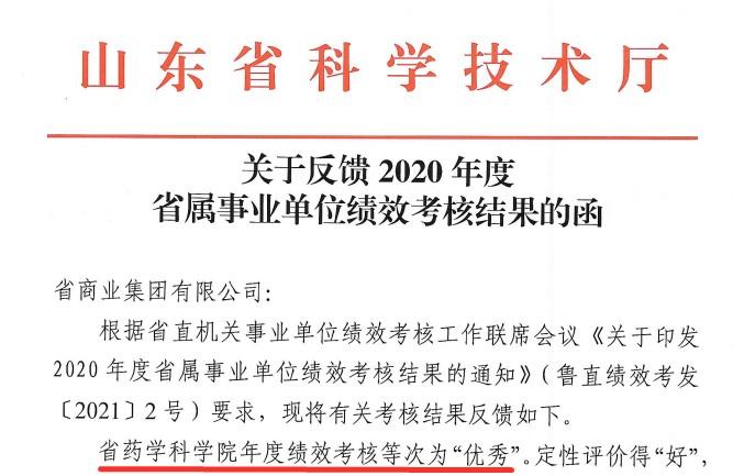 本次绩效考核结果,是对省药科院2020年度工作的认可,省药科院将再接再厉,突出“党建引领+科研创新”管理模式,稳步推进各项工作,开拓创新,砥砺奋进,奋力谱写新时代发展新篇章,为打造全面创新的新鲁商和建设新时代现代化强省贡献药科院力量,以优异成绩庆祝中国共产党成立100周年。