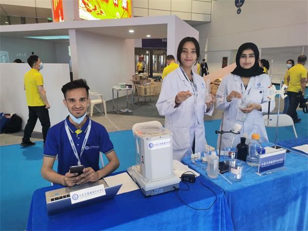3名来自巴基斯坦的留学生分别用汉语讲解并展示了使用直接碘量法(滴定分析法)对维生素C片的含量进行测定、跨境电商平台运营分析的选品和采购。学生们的优异表现得到各级领导的充分肯定。