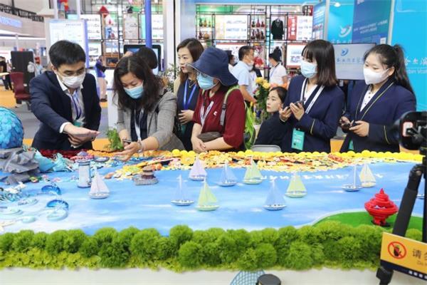 “百年芳华·帆之都”主题展台,围绕庆祝中国共产党成立100周年,集面塑、衍纸、插花、景观设计、饽饽榼子等技艺技能为一体,由学院文创产品饽饽榼子塑造的“游鱼”形象象征莘莘学子力争上游的精神,“大树”形象象征学院“十年树木,百年树人”的教育责任,衍纸花、面花和艺术摆花的融合寓意学院“专业融合、百花齐放”,“孔雀”造型寓意学院德育为先、知行合一的教育理念,“浪花”与“帆船”彰显了学院乘风破浪、勇往直前的奋斗精神。展台运用3D全息投影视频和3D打印雕塑,凸显学院专业特色,增强展台的科技时尚感。