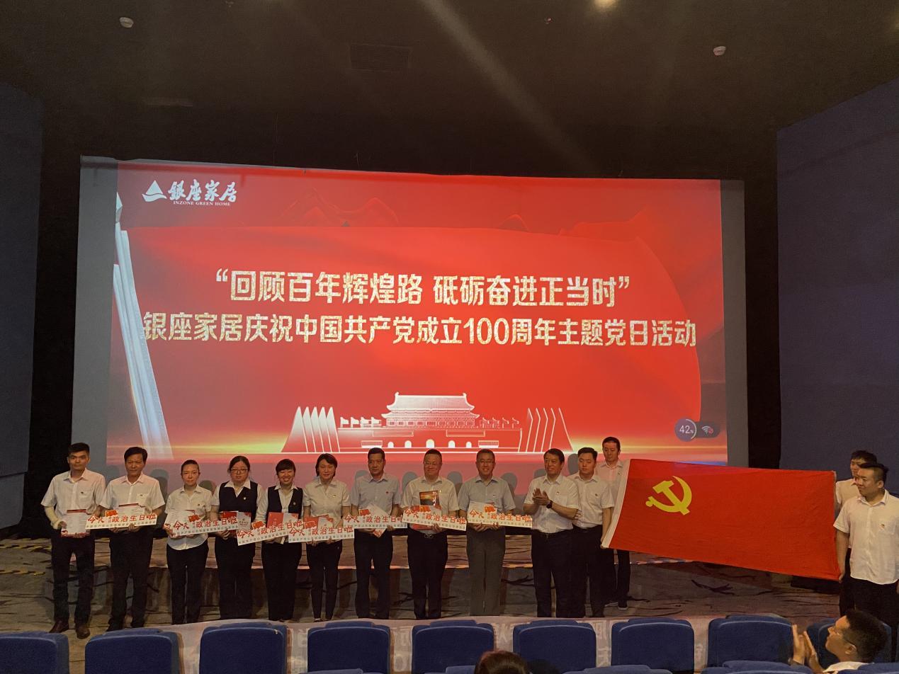 为庆祝中国共产党成立100周年,7月1日下午,银座家居党委开展“回顾百年奋斗路 砥砺奋进正当时”主题党日活动,为7月入党的党员同志集体过“政治生日”,并组织济南区域党支部70余名党员观看建党百年献礼之作——电影《1921》。