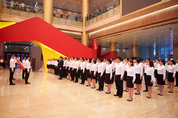 7月1日下午,银座汽车全体党员来到省博物馆,参观“让党旗永远飘扬——山东省庆祝中国共产党成立100周年主题展”。