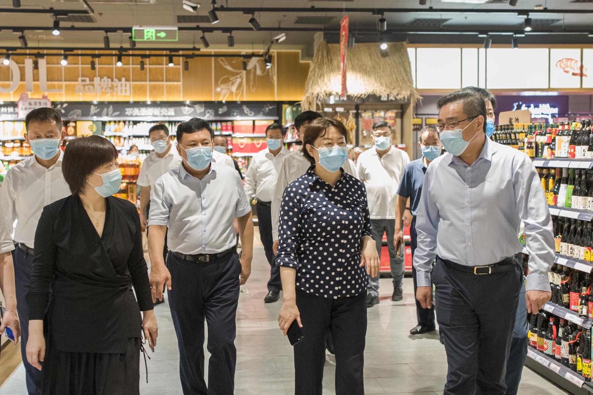 9月1日上午,济南市委常委、组织部部长陈阳到银座华信店督导迎接国家食品安全示范城市复查工作进展情况。历城区委书记张军,银座集团总经理康翔陪同。