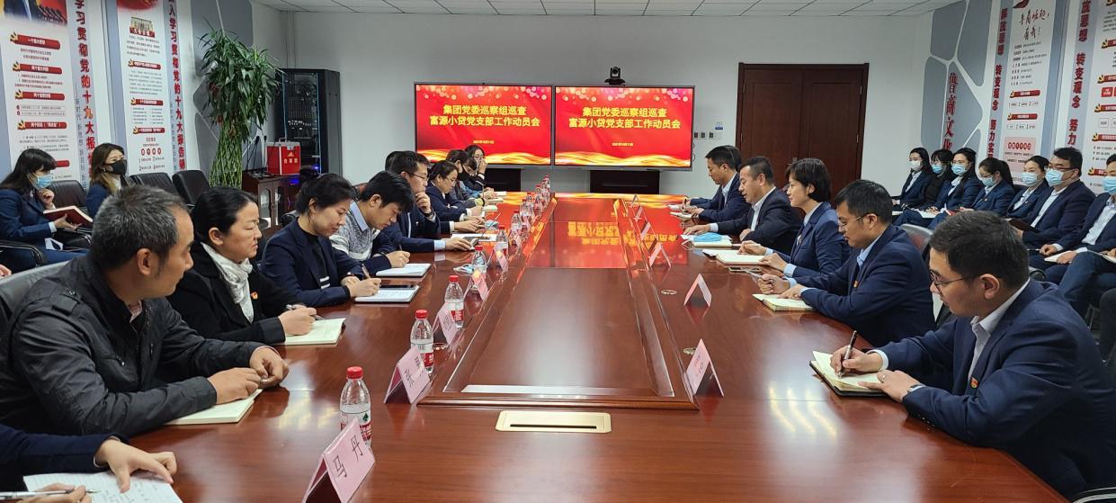集团党委巡察组全体成员,富源小贷全体党员干部职工参加会议。
