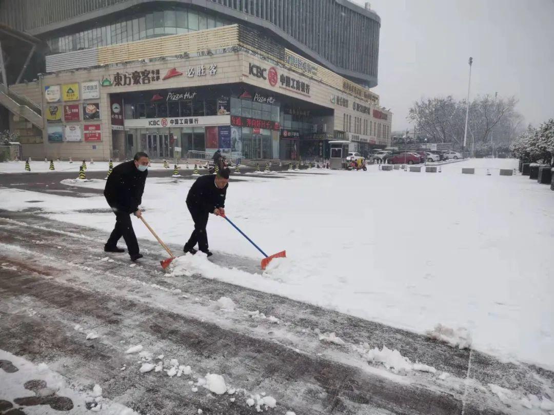 总部物业安全中心及各地市门店的党员纷纷发挥模范带头作用,根据雪情、积雪量,分区域、划重点、逐路逐段做好商场周边的积雪清扫与防滑工作,确保车辆和人行道通行顺畅。大家以“随扫随清、不留雪堆”为原则全面、彻底铲雪除冰,以实际行动在风雪中传递温暖和正能量,路过的群众纷纷点赞。