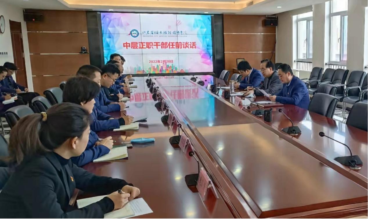 2月20日和26日,省城市学院先后两次召开会议,分别对新任职的中层正、副职干部进行任前集体谈话。学院党委书记宋宁出席会议并讲话,党委副书记刁洪斌主持会议,党委委员、纪委书记张林进行廉政谈话,35名新任中层干部参加会议。