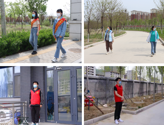 学院辅导员、学生组成志愿者服务队,分段包干、排班定点,每天早中晚在所负责区域进行巡逻、值班,守护校园净土。