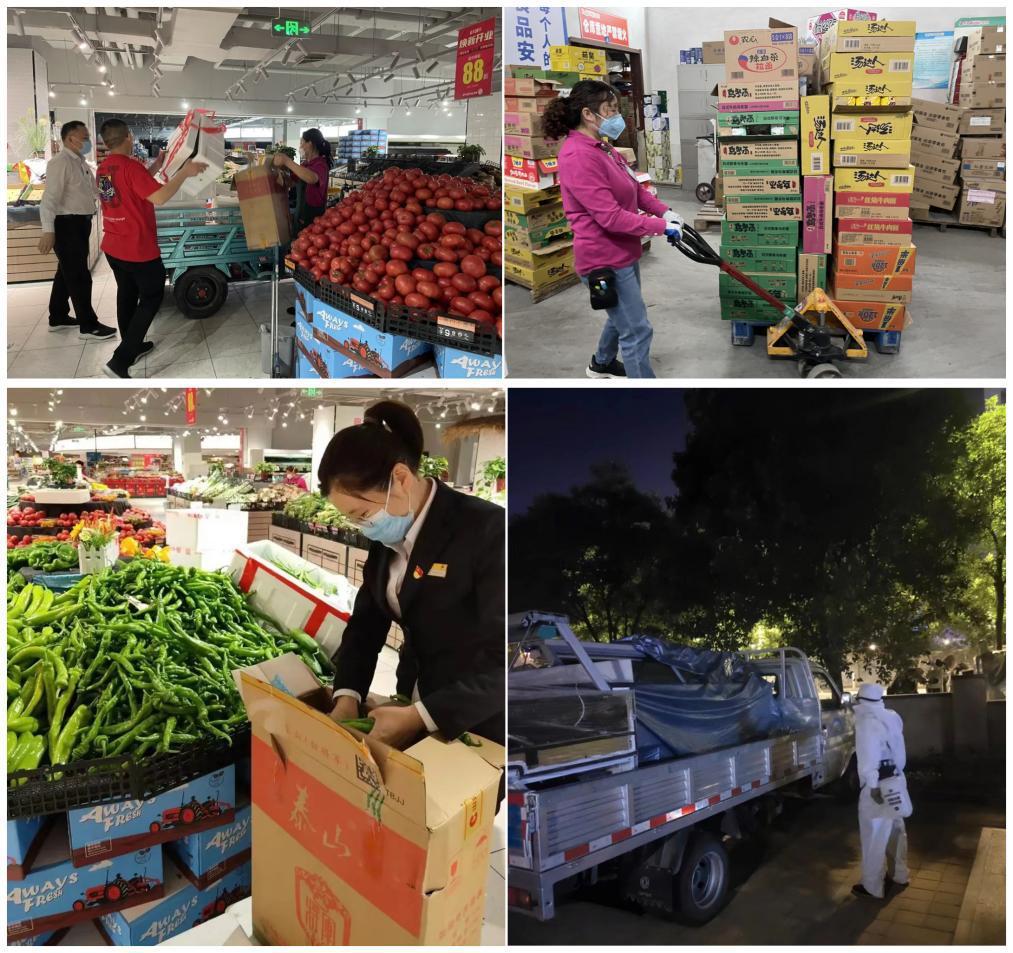 济南银座高新店党支部广大党员身体力行为人民群众筑起隔绝病毒的坚固屏障,以实际行动践行着共产党员的初心使命。支部书记王孜晨同志带头作表率,全体员工上下一心、众志成城,做好各项保供工作,确保民生物资保供链不断档。白天,门店在出入口设立党员先锋岗,测温、验码,确保不漏一人,严守安全门。同时根据所处地理位置和实际情况,积极主动联系周边封控、管控社区,共建保供点,确保居民米面粮油、肉蛋奶等生活必需品供应充足及时。傍晚,门店为驻店员工送上爱心晚餐,准备好被褥等生活用品。夜半时分,当整座城市悄然进入梦乡,门店员工依然奋斗在一线。在自营蔬菜区、粮油米面区、卸货区等,都能看到党员突击队、青年突击队红色马甲的背影,捆扎蔬菜、打包、配送、消杀......所有工作井然有序、快速高效,大家怀揣着对党的忠诚、对生活的热爱,从黎明破晓到满天星斗,完成日常经营与定向保供工作,切实凝聚起不舍昼夜、同舟“供济”的强大合力。