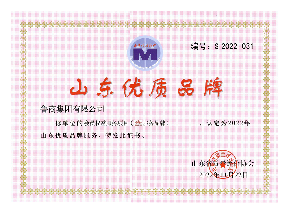 近日,鲁商通在山东省质量评价协会组织的2022年山东优质品牌(产品 服务)培育认定活动中成功通过山东优质品牌服务认定。