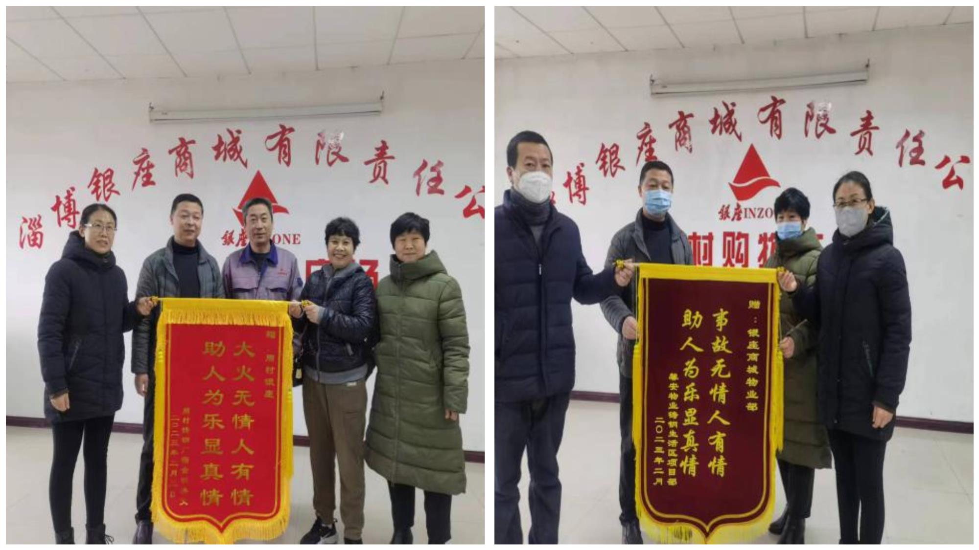 银座员工临危不惧和见义勇为的义举让小区居民赞不绝口,得到了区消防大队的高度认可,称赞他们面对突发火情处置得当,保护了人民群众的生命和财产安全。2月10日,铸钢厂小区物业及居民代表送来锦旗表示感谢。