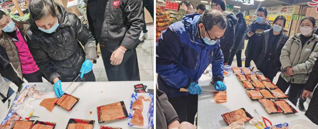 在系统内交流学习的同时,专业课培训也同步开启。2月14日,银座超市事业部邀请业内知名讲师在银座济南马鞍山店组织开展冰鲜三文鱼现场分割教学活动,济南各门店水产技能岗人员积极踊跃参与实训,在老师指导下进行现场分切、操刀演练,面对面交流分享,学习热情高涨。