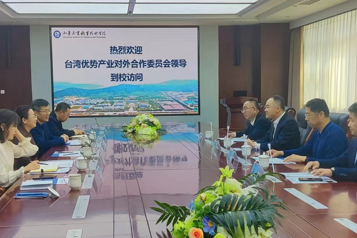 3月30日,台湾主席、台湾优势产业对外合作委员会主席王新力一行4人到访山东商院,就引入台湾优势产业、师资交流、文化艺术交流、产业学院建设相关工作进行研讨。山东商院党委副书记、院长王鑫,党委副书记宋超参加座谈。
