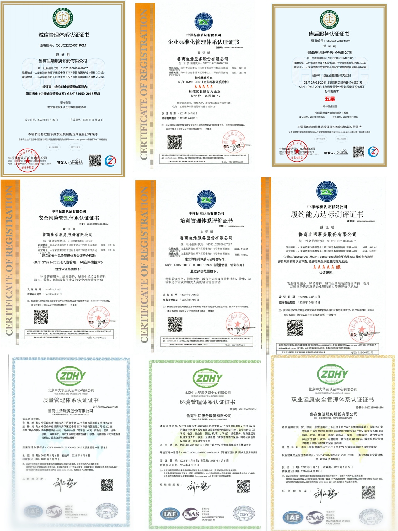 本次通过认证的9项管理体系贯穿标准化、质量管理、环境、职业健康安全管理、履约能力、售后服务、诚信管理、安全风险管理、培训管理,为进一步规范鲁商服务工作流程、有效控制风险,形成标准化、规范化管理模式,持续增强公司及各岗位人员的服务意识与服务水平提供了坚强保障。