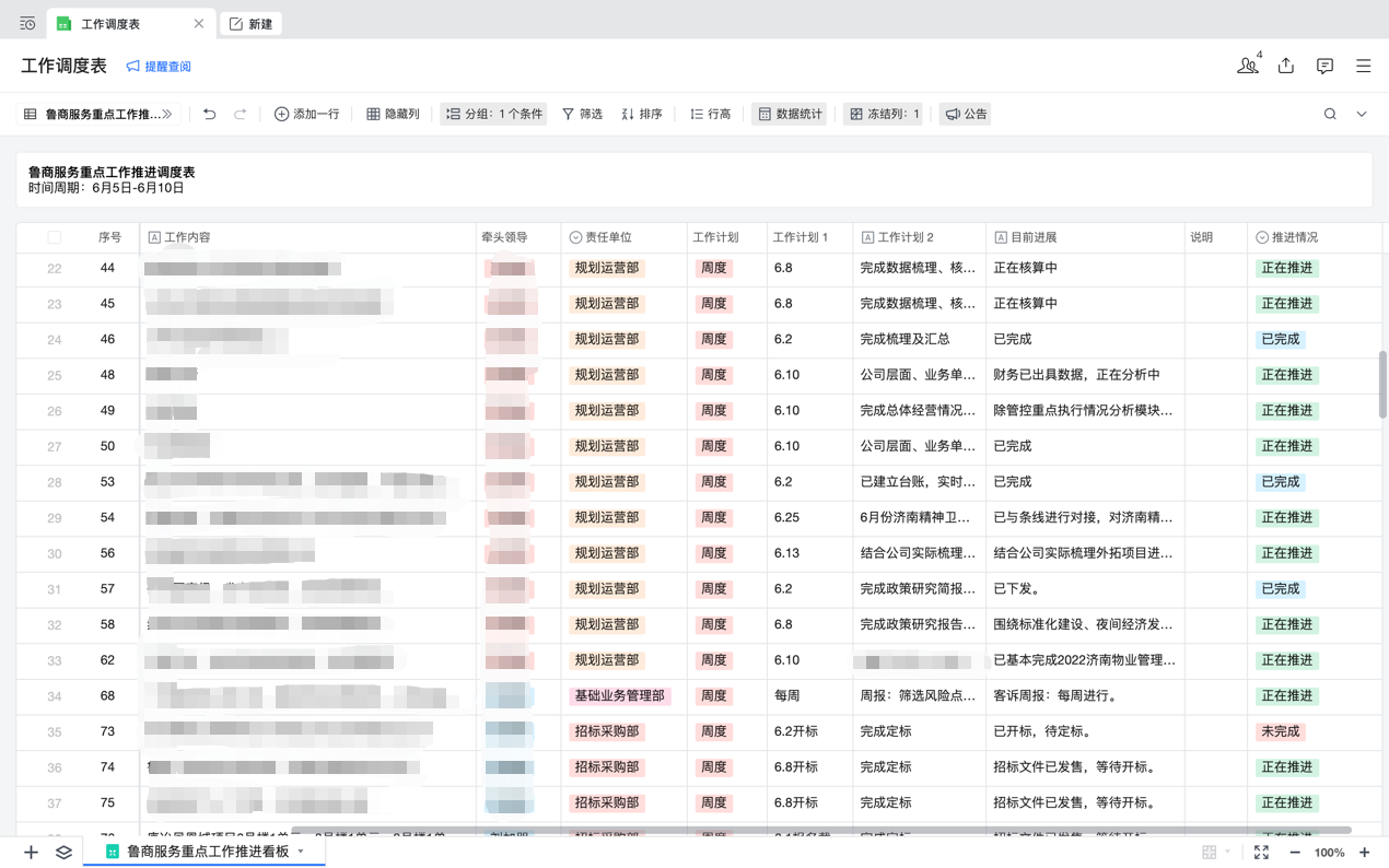 公司通过“企业微信智能图表”,创建《调度事项视图看板》,形成“实时督导”,随时查看工作进度,实时调度工作协同,工作完成及时销项,实现常态调度、专项调度高效结合,确保工作责任明晰、节点明确、推进有力、见行见效。截至5月底,梳理重点、难点工作事项台账122项,公司周调度事项销项率达100%,月销项率达92%。
