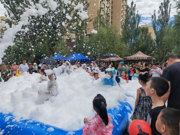 暑期期间,鲁商服务各项目推出“泡泡派对”“水枪派对”等活动,组织业主家长带着孩子们一起通过游戏消夏避暑,享受亲子时光。