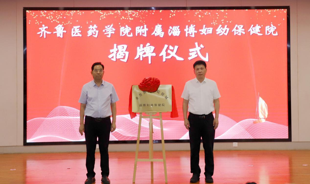 会上,吕传毅与程勤共同为齐鲁医药学院附属淄博妇幼保健院揭牌。