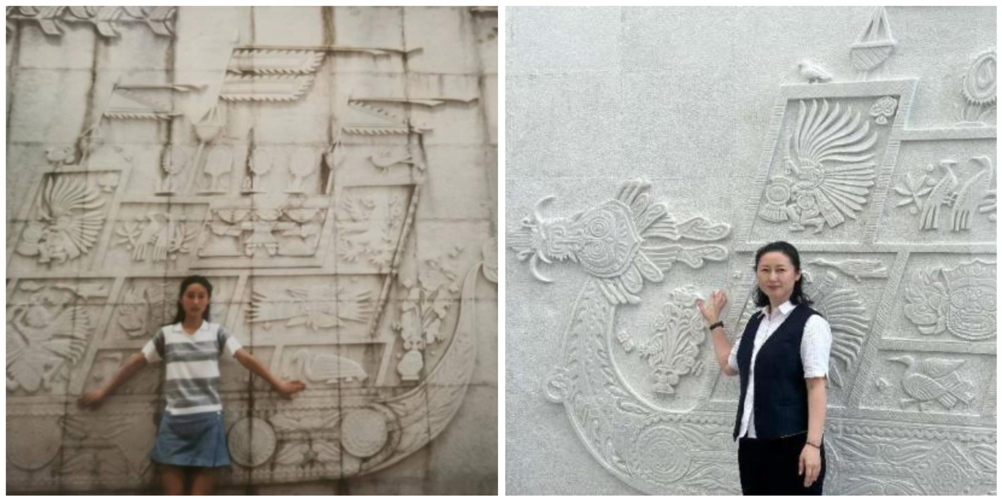 9月16日,银座济南商城店西下沉龙壁修复完成,已在其他门店工作的员工金辉听闻后,特地拿着26年前的照片前来打卡留念。对她来说,这组照片不仅记录着自己的青春流转,更坚定了她与银座一路前行的信心。