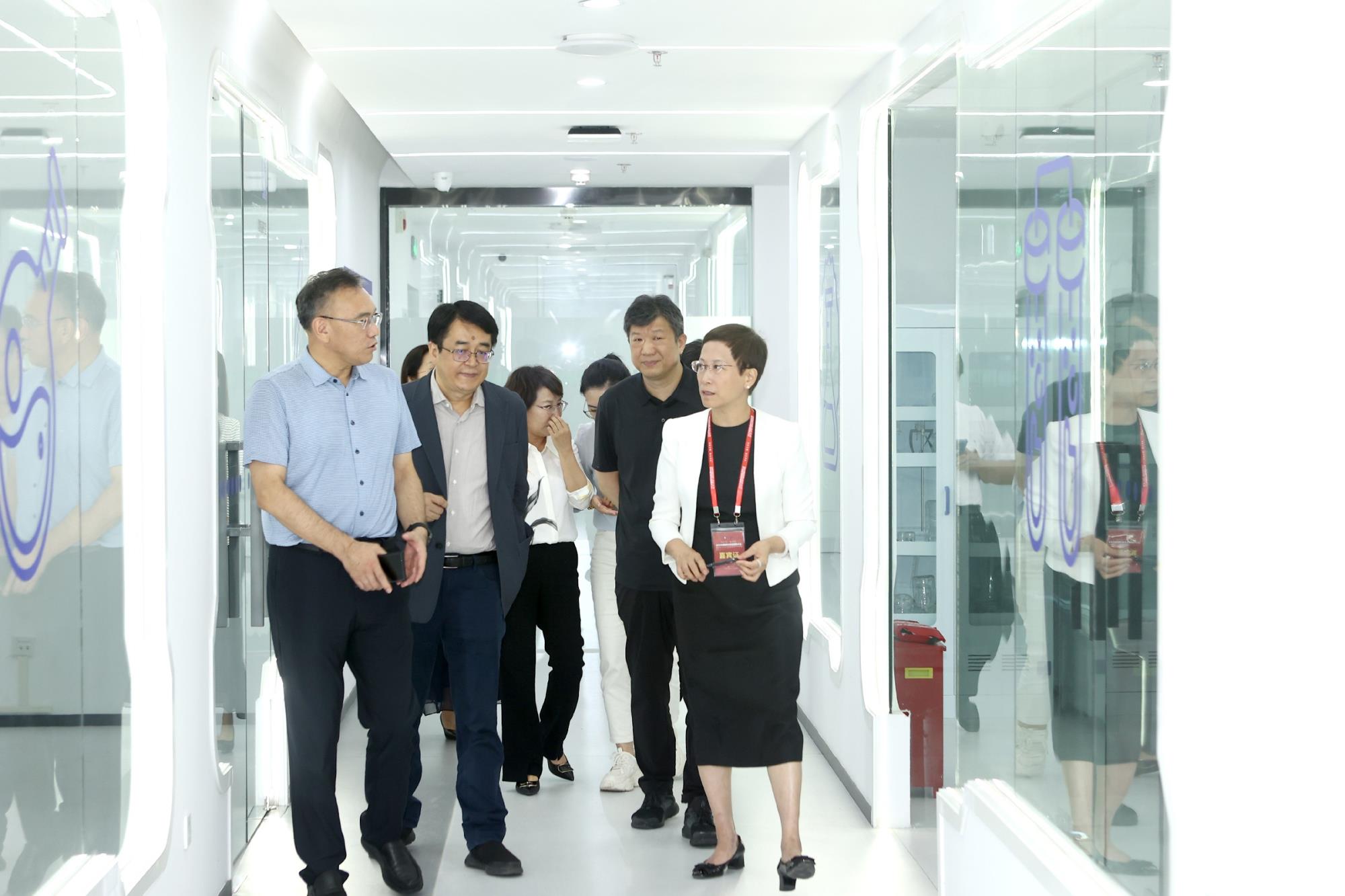 颜江瑛首先听取福瑞达创新发展现状及未来规划的汇报,并参观福瑞达一楼展厅、透明研发实验室和研创中心实验室,详细了解福瑞达化妆品板块生产经营情况。她对福瑞达产品力、科技力、品牌力表示高度认可,并对美妆产业的快速发展及战略转型规划给予肯定。她指出,福瑞达近年来科技创新长足发展、产业结构持续优化、收入利润逆势增长。希望福瑞达继续秉承科研基因,持续创新和发展,为消费者提供更多优质产品,为人类美好生活创造美。中国香料香精化妆品工业协会也将继续发挥桥梁纽带作用,为企业提供更多支持,赋能美妆产业发展。
