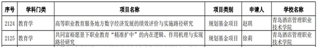 近日,教育部公布2023年度教育部人文社会科学研究一般项目立项名单,青岛酒店学院赵琪主持的《高等职业教育服务地方数字经济发展的绩效评价与实施路径研究》和徐莉主持的《共同富裕愿景下职业教育“精准扩中”的内在逻辑、作用机理与实现路径研究》2项课题喜获立项,立项数量位居全国高职院校前列。