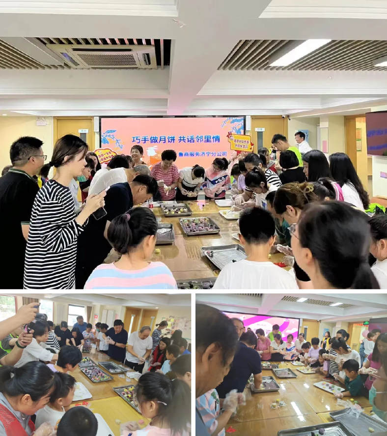 济宁地区公司、南池公馆服务中心携手南池社区开展“中秋国庆双节至 共愿家国两团圆”主题活动。邀请业主共同制作月饼,加强邻里之间、物业与业主之间的交流互动。