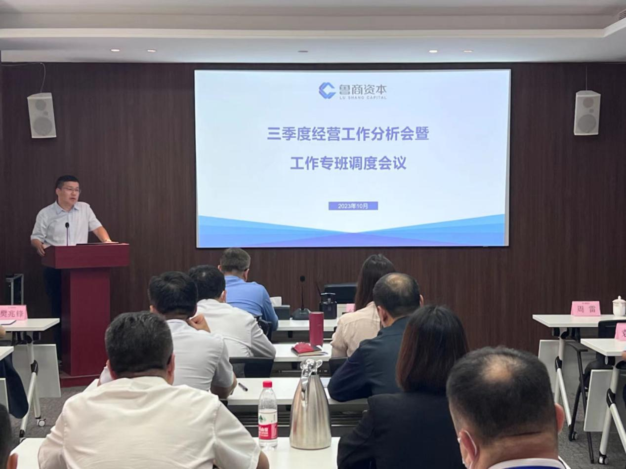 10月8日,鲁商资本召开三季度经营分析会,传达鲁商集团三季度经济运行情况分析会议精神,分析公司经营形势,聚焦年度任务,安排部署四季度重点工作任务。公司党委书记、董事长纪军令,党委副书记、总经理王军出席会议并讲话。