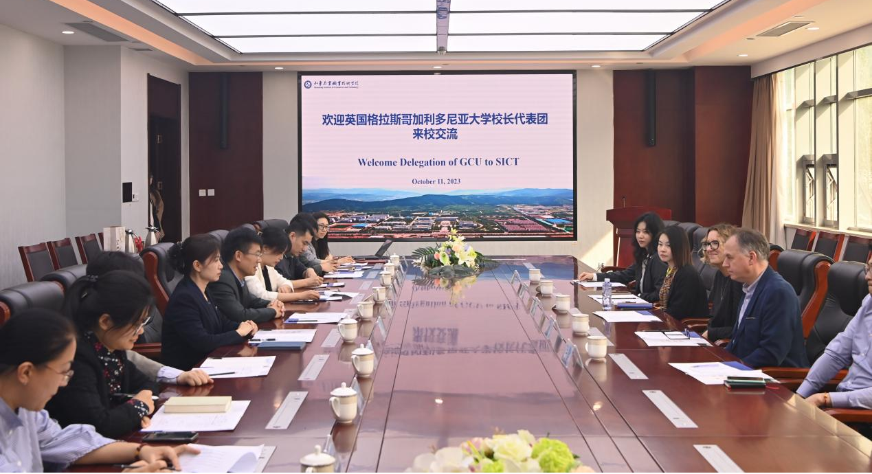 10月11日,英国格拉斯哥加利多尼亚大学副校长安德森一行到访山东商职学院。学院党委副书记宋超,国际交流部、现代金融产业学院、云计算技术与应用产业学院负责人及相关工作人员参加交流活动。