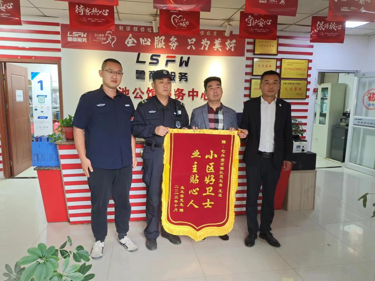 梁先生表示,由于自己工作较忙,父母负责接送孩子上下学,项目中心工作人员多次主动帮助老人推三轮车、给轮胎打气等,免除了自己很多后顾之忧,所以特意送来写有“小区好卫士 业主贴心人”的锦旗表示感谢。