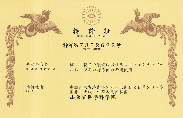 近日,省药科院《羟基酪醇及其衍生物在制备抗抑郁产品中的新应用》获日本发明专利授权,标志着该项科研成果在国际上获得认可,进一步完善了省药科院关键技术知识产权保护体系,增强了核心竞争力。