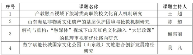 近日,山东省文化和旅游厅公布了2023年度山东省文化和旅游研究课题立项名单,青岛酒店管理职院共有4项课题获得立项。