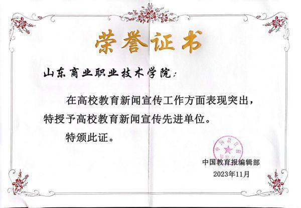 11月1日,中国教育报刊社山东新闻宣传通联工作会议在淄博召开,会上对先进单位和先进个人进行了表彰。山东商职学院、青岛酒店管理职院分别获评2023年度高校教育新闻宣传先进单位,山东商职学院党委委员、工会主席、宣传部部长侯荣增和青岛酒店管理职院党委宣传部副部长李代玉获评2023年度高校教育新闻宣传先进个人。