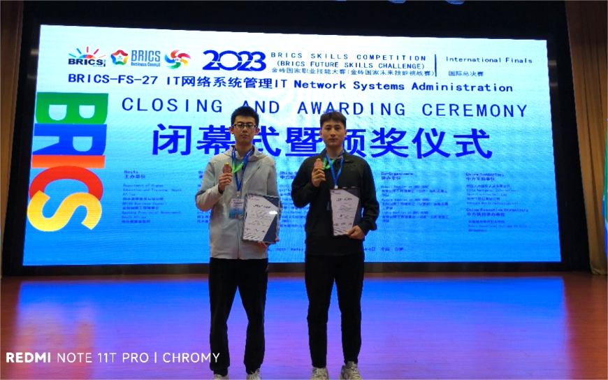 11月4日至6日,2023金砖国家职业技能大赛IT网络系统管理赛项总决赛在安徽举行。山东商职学院学生张玉星、陈浩获总决赛一等奖。