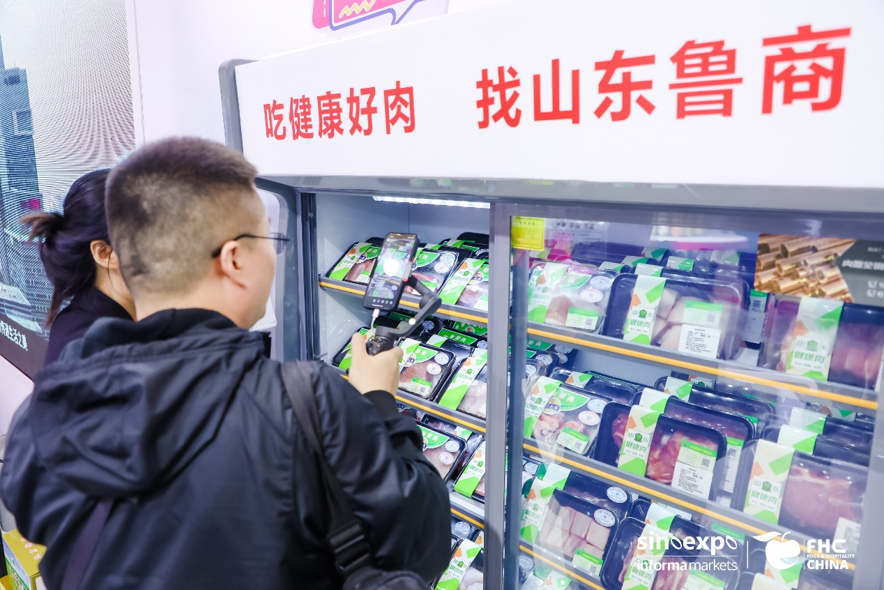 展会现场,山东健康肉项目凭借其健康营养、标识统一、安全可溯源的产品特性,吸引众多中外友人拍照打卡、驻足问询。