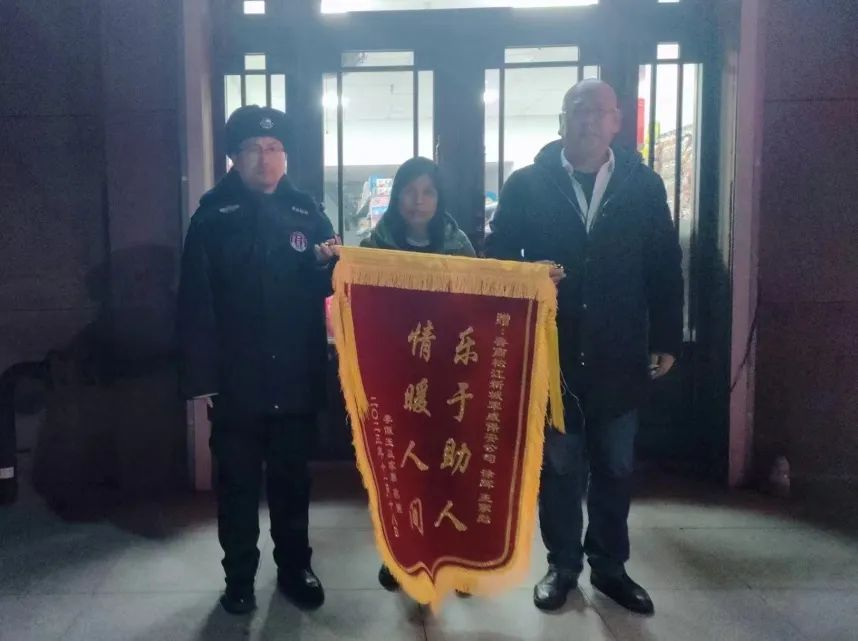 11月19日,老人女儿专程来到松江新城项目,向当日带班队长徐辉及队员王家彪赠送锦旗,感谢项目工作人员对老人的贴心陪伴和照顾,帮助老人安全回家。