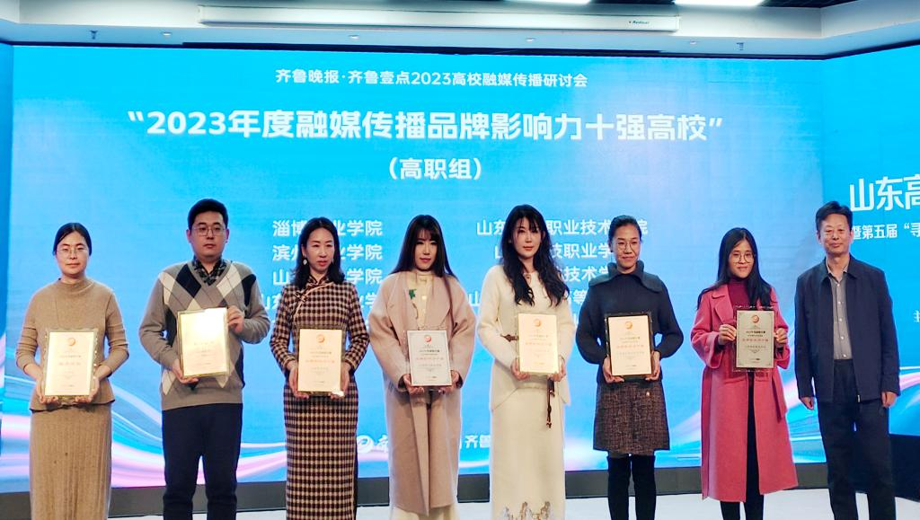 11月29日,齐鲁晚报·齐鲁壹点2023高校融媒传播研讨会暨第五届“寻找山东最美大学”微视频/摄影大赛颁奖典礼举行。山东商职学院荣获“2023融媒传播-山东高职(专科)院校传播力十强”和第五届“寻找山东最美大学”微视频/摄影大赛“优秀组织奖”。