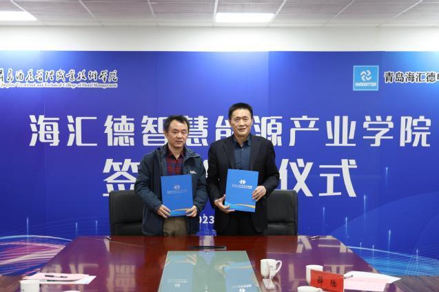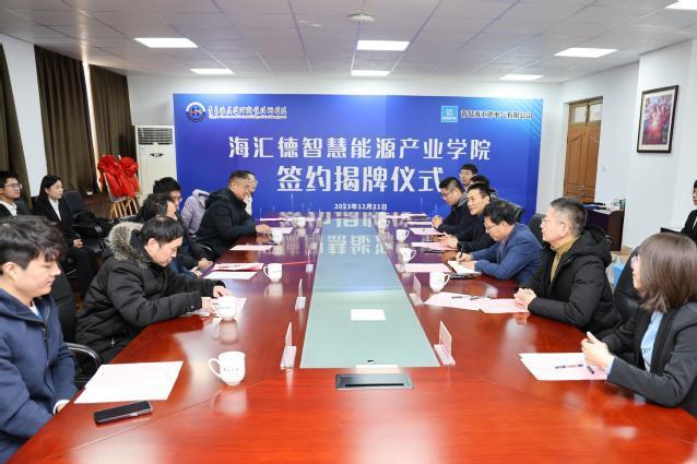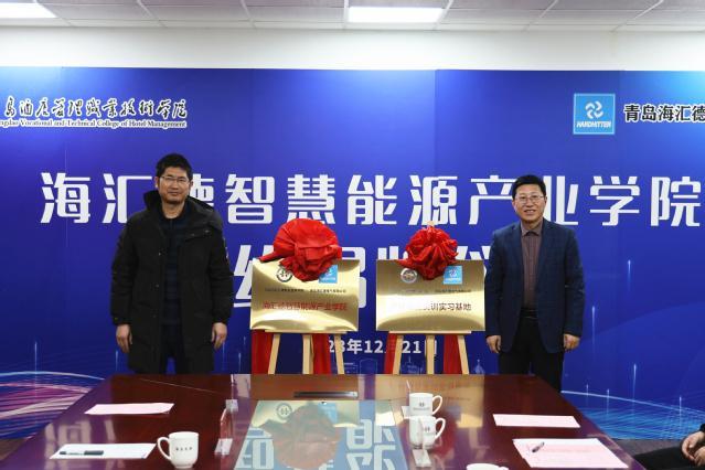 12月21日,海汇德智慧能源产业学院合作签约揭牌仪式在青岛酒店管理职院举行,校长姜玉鹏、副校长张宗国,青岛海汇德电气有限公司董事长孙健、副总经理栾永明参加仪式。