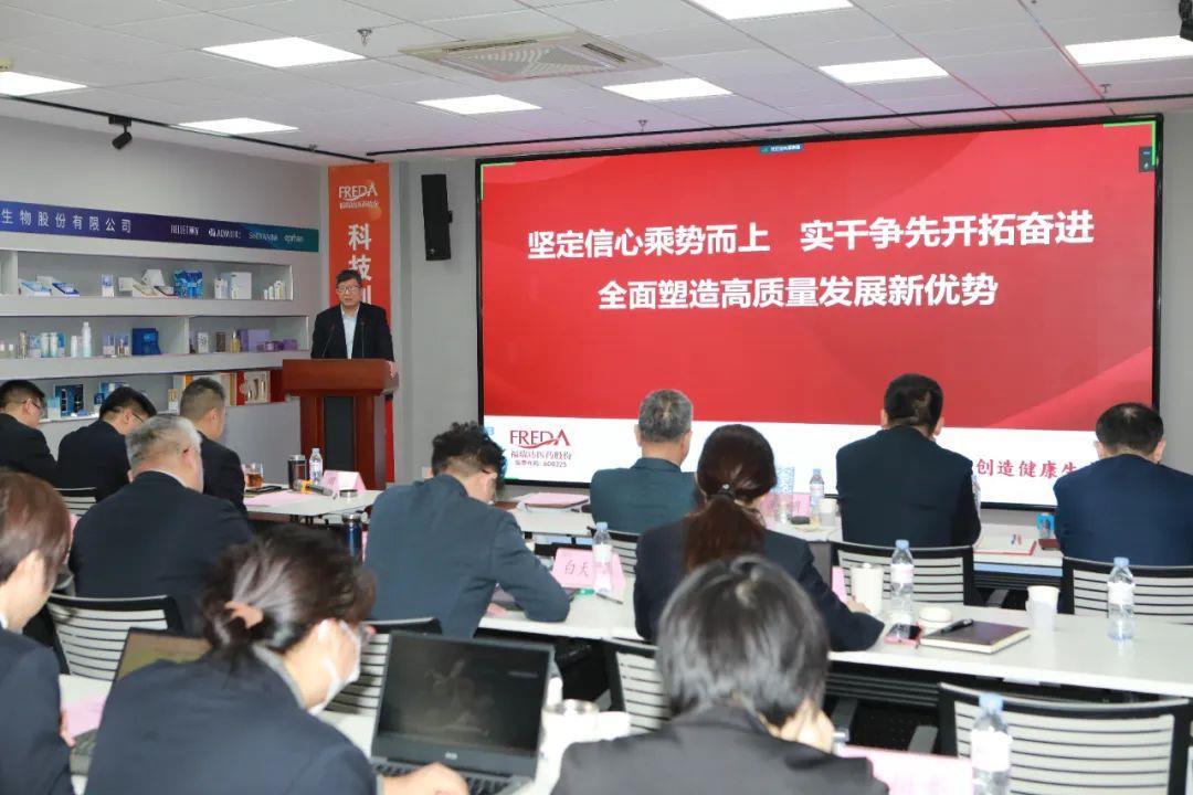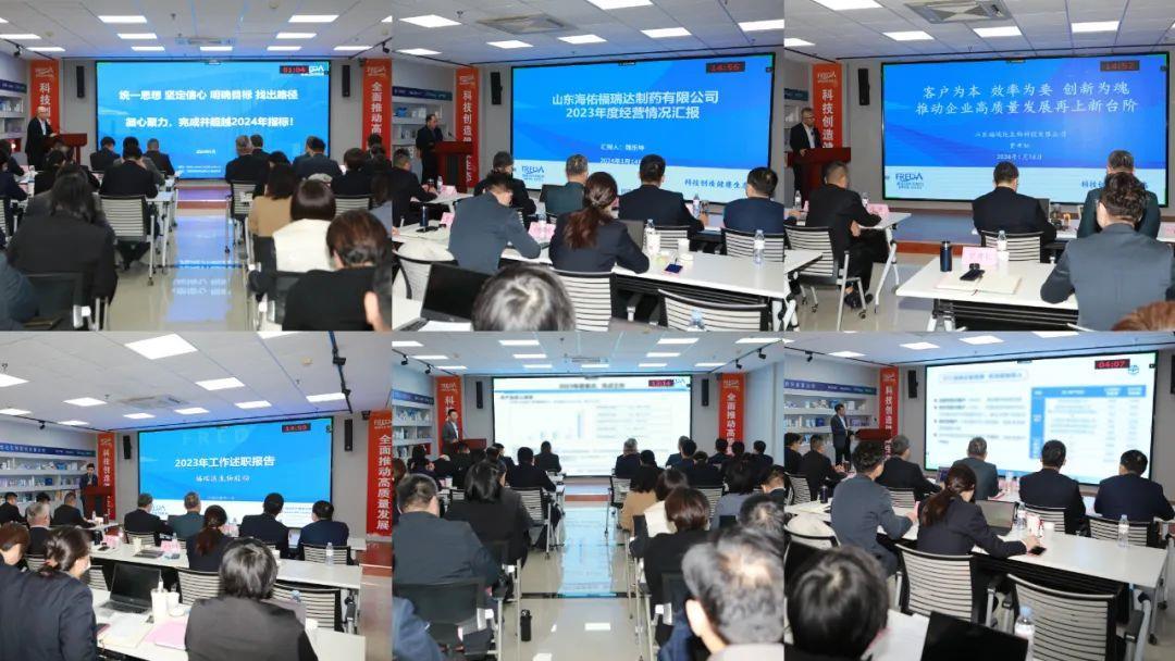 贾庆文作题为《坚定信心乘势而上 实干争先开拓奋进 全面塑造高质量发展新优势》的讲话。他指出,2024年福瑞达将认真贯彻鲁商集团“12345”高质量发展战略,强化“五个坚持”,落实“五个聚焦、五个确保”,以科技创新力、产业生态力、管理运营力、品牌影响力、组织文化力,持续壮大规模实力。一是强化科技创新力,培育新质生产力。加大研发投入,推进研发一体化规划,发挥学术专家委员会作用,坚持以市场为导向,以科技创新推动产业创新。二是做大做强核心主业,打造产业生态力。优化协同机制,着力推进四个“一体化”。医药板块加快品牌中药、中药大品种培育。化妆品板块聚焦资源,持续推进大单品策略。原料板块向绿色生产、高品质制备和衍生产品转型。三是专业驱动、数智升级、强化管控,增强管理运营力。加强品质管理,提升智能制造水平,落实降本增效,加强风险防控,做好安全管理。四是发挥行业领军作用,塑造品牌影响力。培养全球视野,积极开展国际业务。在行业论坛发声,全面启动ESG品牌传播,以科学与文化营销展现科技自信、“国潮”魅力。五是党建引领、深化改革,提升组织文化力。将党建融入生产经营,用党建保障工作落实。扎实开展新一轮国企改革深化提升行动,提升组织效能。