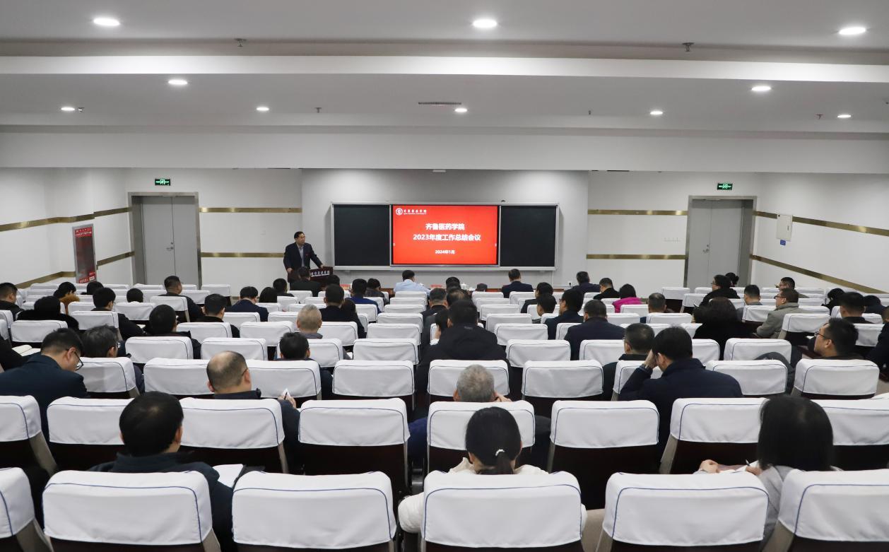 1月18日,齐鲁医药学院召开2023年工作总结会议,学校班子成员出席会议,全体中层干部参加会议,董事长魏振东主持会议。