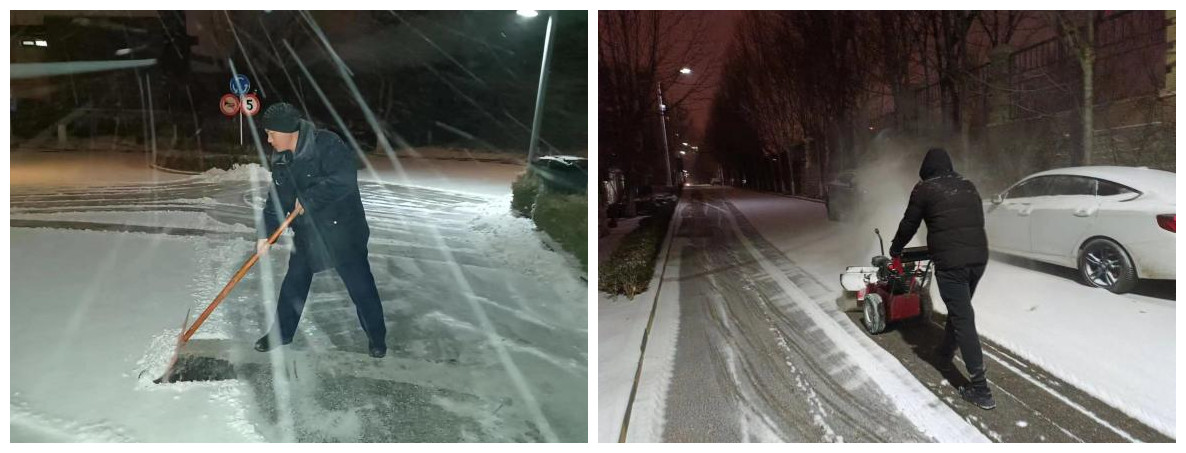济南城市公司各项目冒着刺骨寒风投入到清雪工作中。工作人员相互配合,通过“机械+人工”作业的方式,对项目主路、出入口及单元门等公共区域进行彻底清扫,全力以赴保障道路畅通。