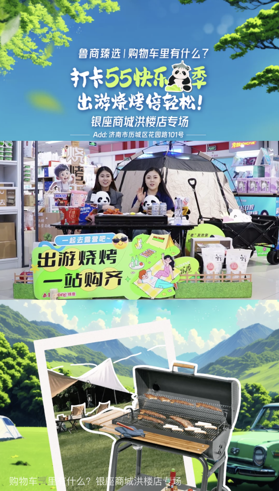 近日,鲁商科技旗下鲁商臻选直播团队联合银座集团在银座济南洪楼店开展“打卡55快乐季,出游烧烤倍轻松!”主题直播活动,观看人数创历史新高。