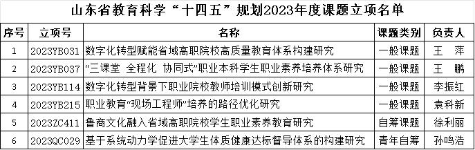 近日,山东省教育科学规划领导小组办公室公布山东省教育科学“十四五”规划2023年度课题立项名单,山东商职学院6项课题获准立项,获批数量创新高。