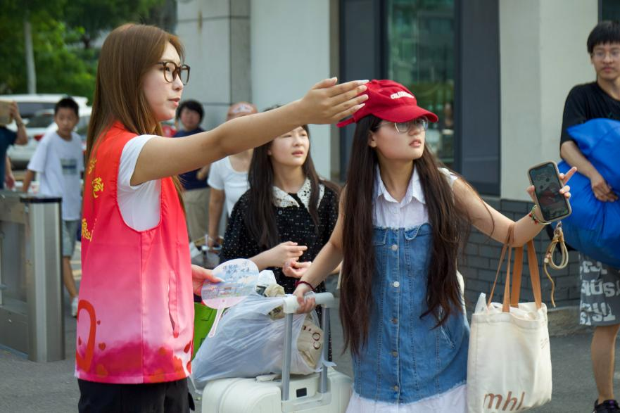 报到期间,校园内设置多处迎新服务台,提供指引和咨询服务。新生到校后,志愿者为其提供“一站式”服务,介绍学校情况,协助办理各项手续。校园多处设有休息点,提供热水、绿豆汤、扇子及防暑药品,校医院医护人员全程守护,配备基本药品,提供医疗服务。学校驻地派出所民警也到校开展预防诈骗、安全宣传教育等。