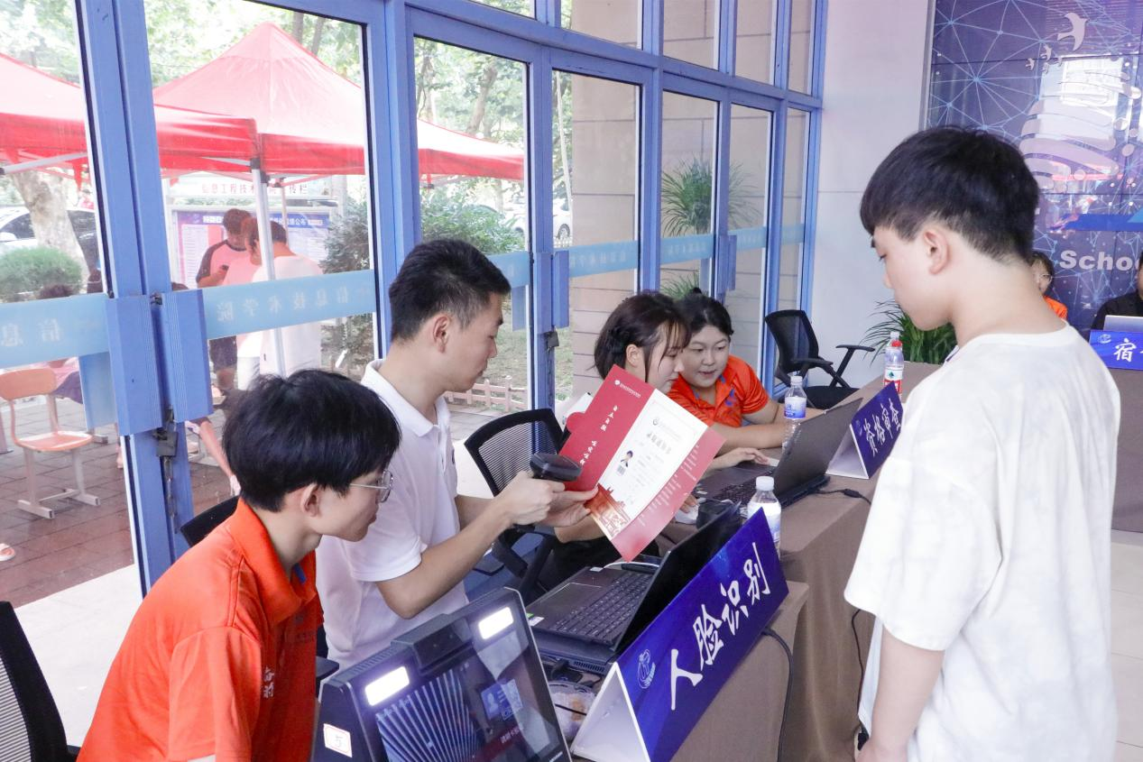 报到前,新生通过在线平台完成缴费、查询分班情况、选取宿舍床位,入学手续“码”上办;入校后,新生现场刷脸进行身份核验,“一键入校”简单高效。学校还通过微信、微博、抖音等新媒体平台开展全方位宣传,为新生入学提供无微不至、便捷通畅的高效服务;通过大数据平台实时更新新生报到入校统计,动态“直播”报到进程。
